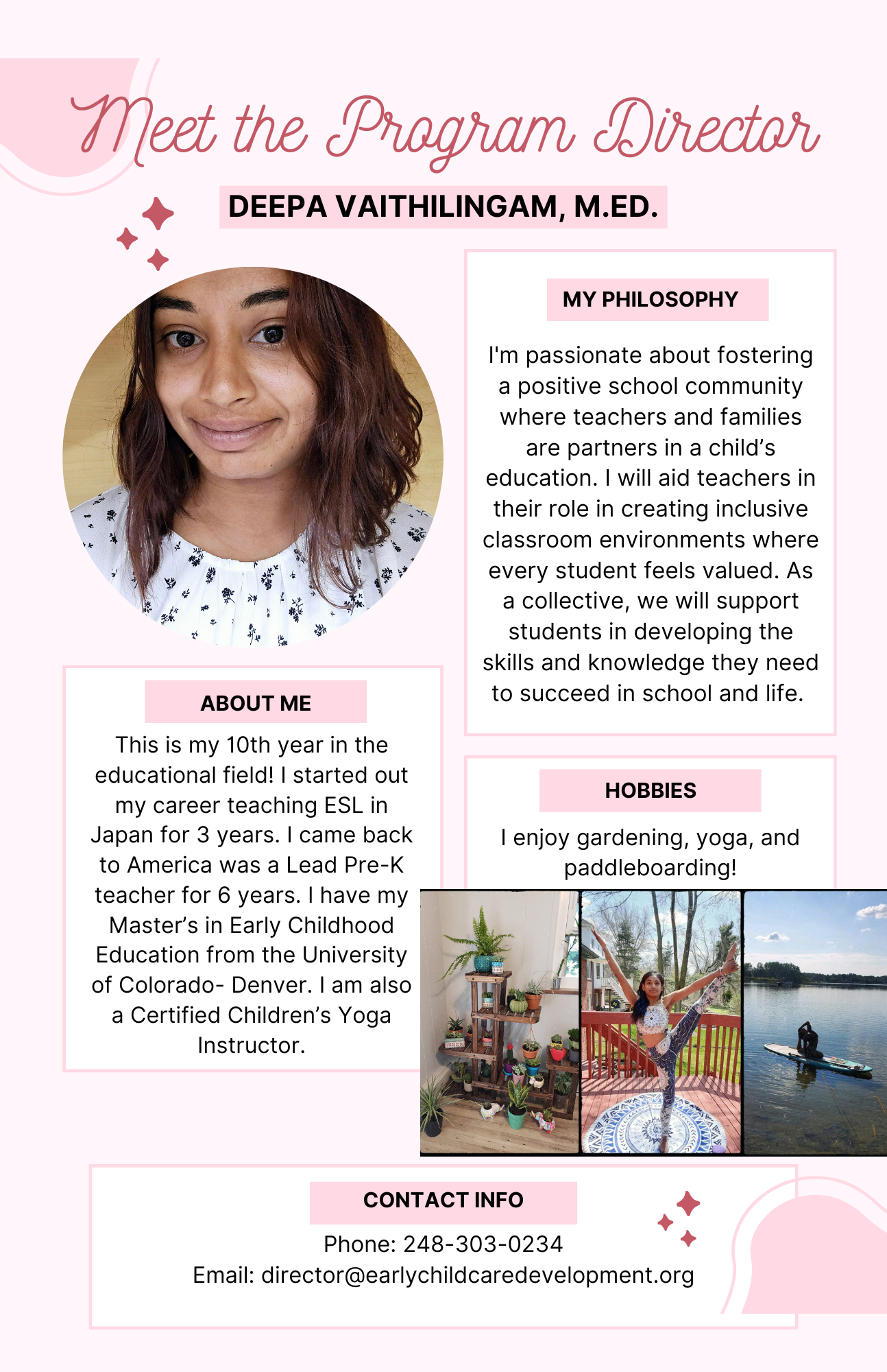 Our administration team is in charge of day-to-day operations, ensuring that educators and families have the resources and support they require for success.